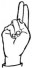 На ћирилици написано БУДИМИР ЧАБРИЋ састоји се из 13 слова [?]. Исписано ћириличном једноручном азбуком за глувонеме: